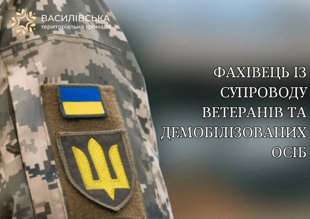 З жовтня поточного року у Василівській громаді, на базі координаційно-гуманітрному хабу, доступні послуги фахівця із супроводу ветеранів та демобілізованих осіб — Кадигробова Людмила Юріївна Фахівець із супроводу – це інформаційний радник, який допомагає, заповнює документи, координує ветерана, спрямовує, представляє інтереси, роз’яснює права. Це – нова професія, новий дуже ефективний інструмент реінтеграції ветеранів. Послуги надаються: ветеранам війни;
