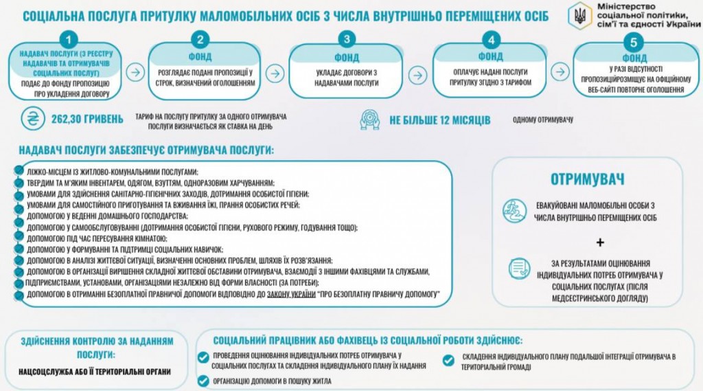 - запровадження договірної форми надання соціальної послуги притулку маломобільним особам із числа внутрішньо переміщених осіб.