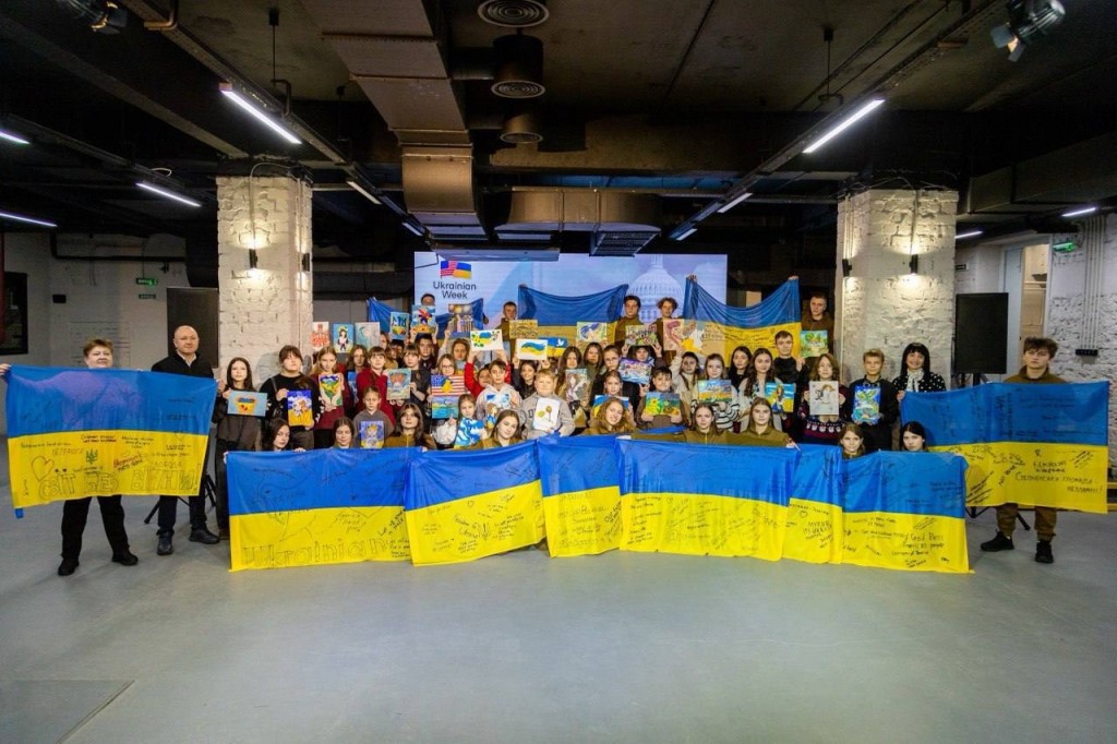 Разом із дитячими роботами до Сполучених Штатів Америки також вирушили прапори з посланнями від представників юнацького руху «Байда».